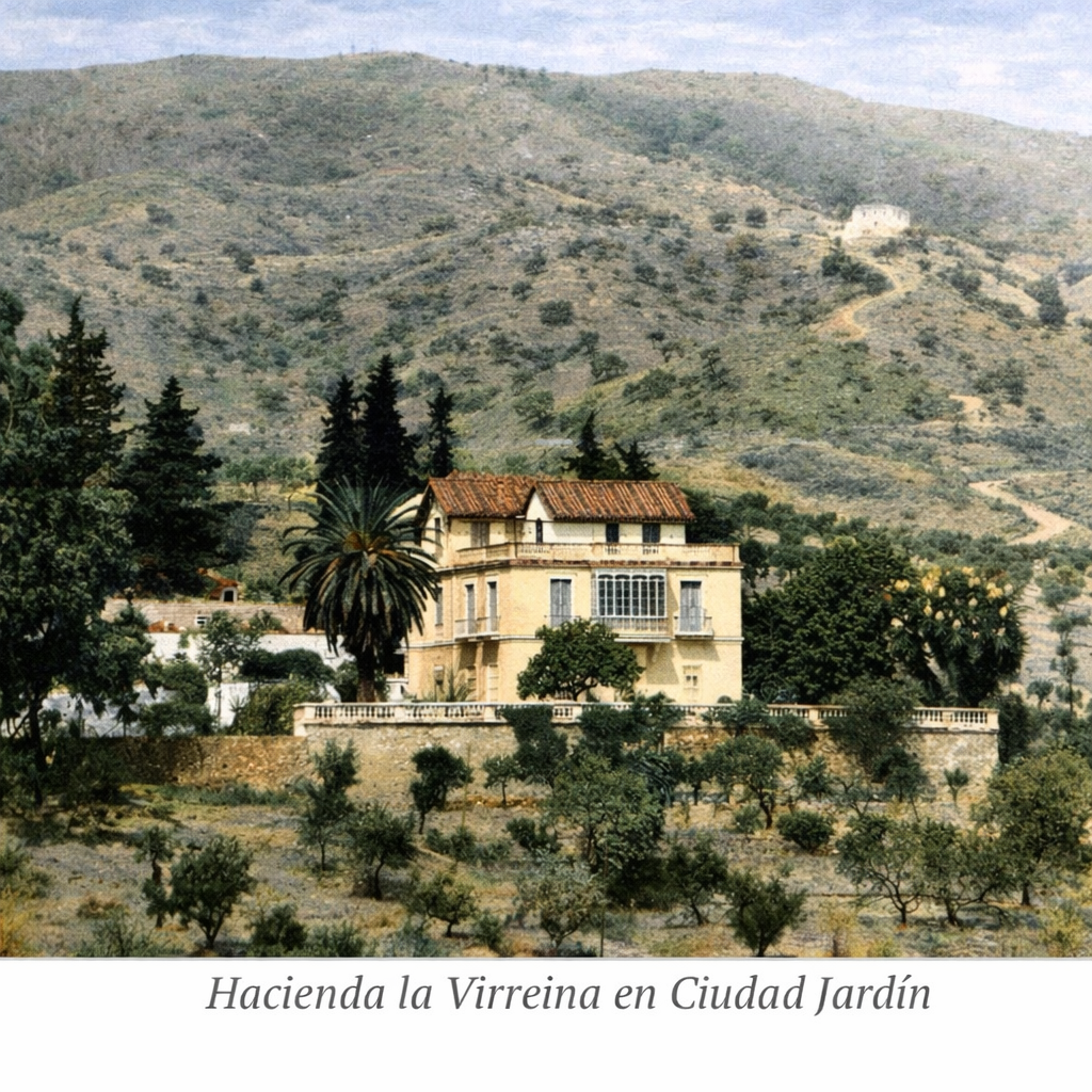 La imagen más antigua de la zona corresponde a una “VISTA Y PERSPECTIVA DE MÁLAGA TOMADA DESDE EL CORTIJO DE LA PALMA, PROPIEDAD DEL CONVENTO DE LA MERCED”, fechada en el año 1780. En esta perspectiva, tomada desde una zona próxima al monte Coronado, se observan los cauces del río Guadalmedina y de su afluente el arroyo de los Ángeles y de una serie de zonas verdes, cortijos, haciendas y huertas: Huerto de los Claveles en el Molinillo, Huerta y casa de Godino, Hacienda del Padre Mesa, Huerta y Cortijo de la Palma, Hacienda de la Virreina, Huerta Alta, Huerta del convento de Capuchinos, Alameda de Capuchinos, Huerta del convento de los Ángeles, casa y Huerta de Málaga, Hacienda de Martiricos, además de otras haciendas sin denominación. Suelen constar de una o varias casas, jardines con grandes árboles y huertas. También aparecen una carreta y una carroza, que nos habla del uso agrícola de la zona y del residencial como lugar de recreo para los grandes propietarios. En primer término, aparece el Cortijo de la Palma con una gran extensión, propiedad del convento de la Merced, que ha dado lugar hoy a un barrio, Palma-Palmilla. Como sucedía con los jesuitas en Teatinos y los dominicos en Churriana, los mercedarios malagueños utilizaban esta hacienda como espacio de recreo y de aprovisionamiento de productos agrícolas. A su izquierda se hallaba la Hacienda de la Virreina, cuya mansión torreada estaba rodeada por cipreses, árboles de sombra, frutales, olivos y una viña. Su nombre se atribuye a Ana Zayas y Ramos, natural de Iznate y casada con el virrey Matías de Gálvez. No obstante en la Perspectiva de Málaga de 1780 aparece ya el nombre de Hacienda de la Virreina. Matías de Gálvez fue nombrado Virrey de la Nueva España en el año 1782, por lo que es imposible que el nombre de la Hacienda se deba a la mujer de Matías. La casa, propiedad hoy del Ayuntamiento de Málaga, fue derribada y reconstruida. Se trata de una desgraciada restauración.