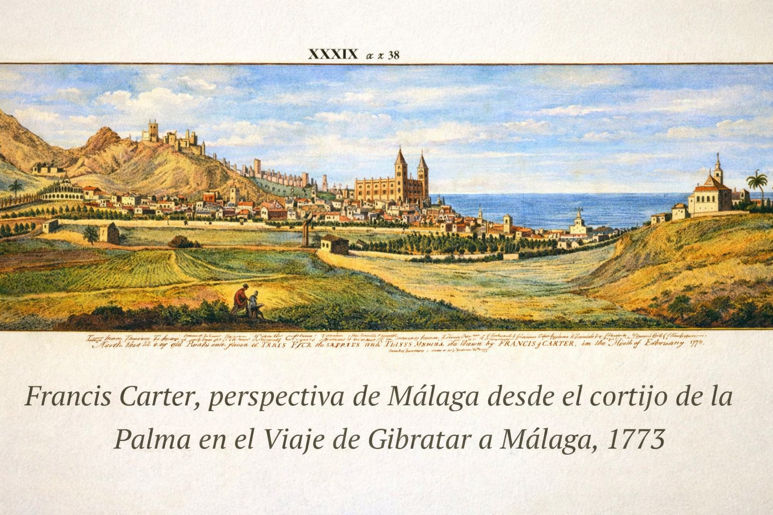 - Francis Carter, perspectiva de Málaga desde el cortijo de la Palma en el Viaje de Gibratar a Málaga, 1773