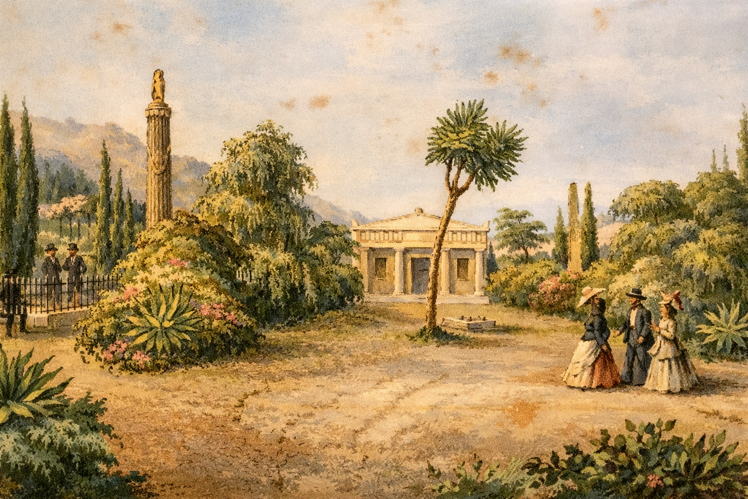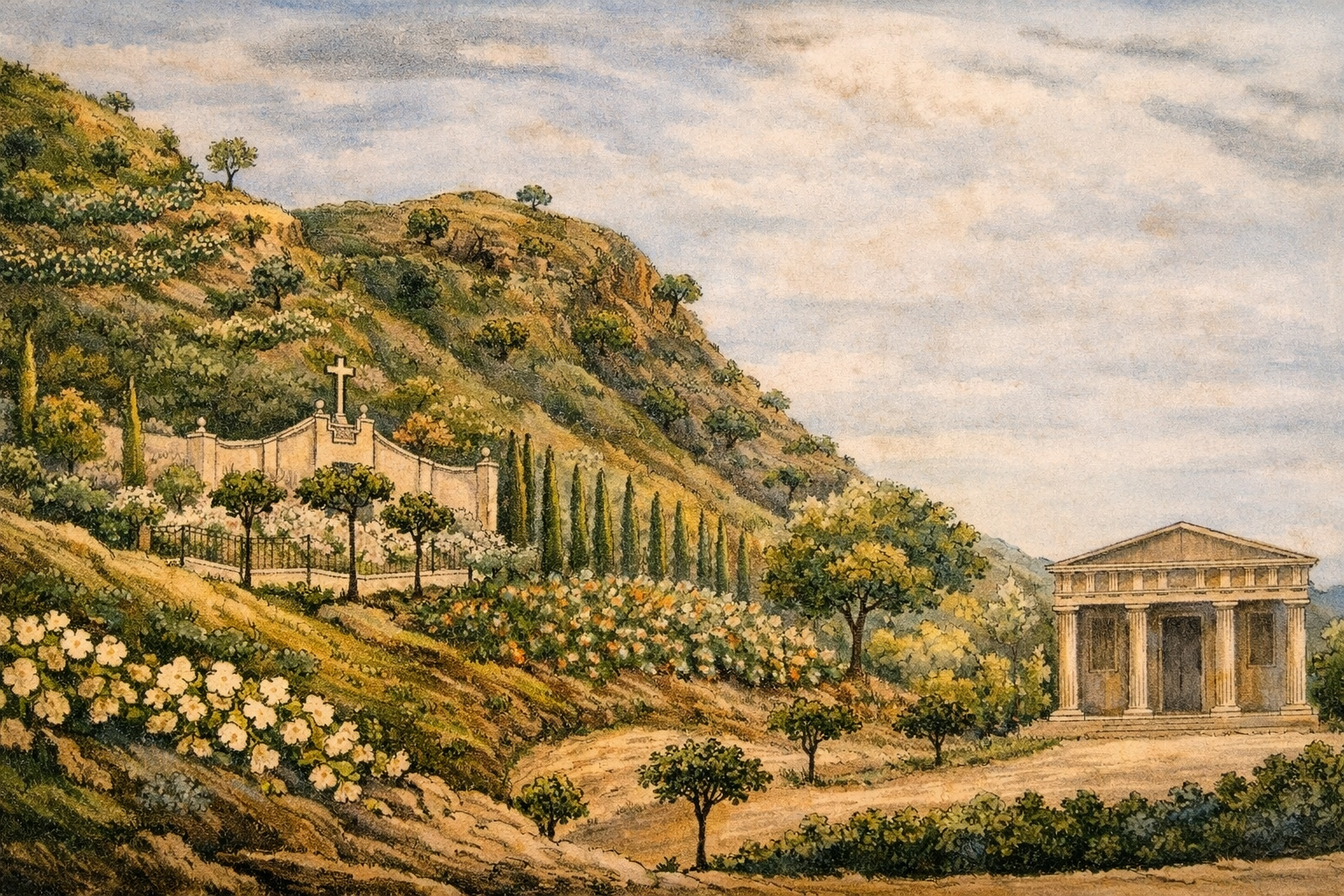 - Prespectiva del Cementerio Inglés de Málaga. Revista El Guadalhorce, 1839