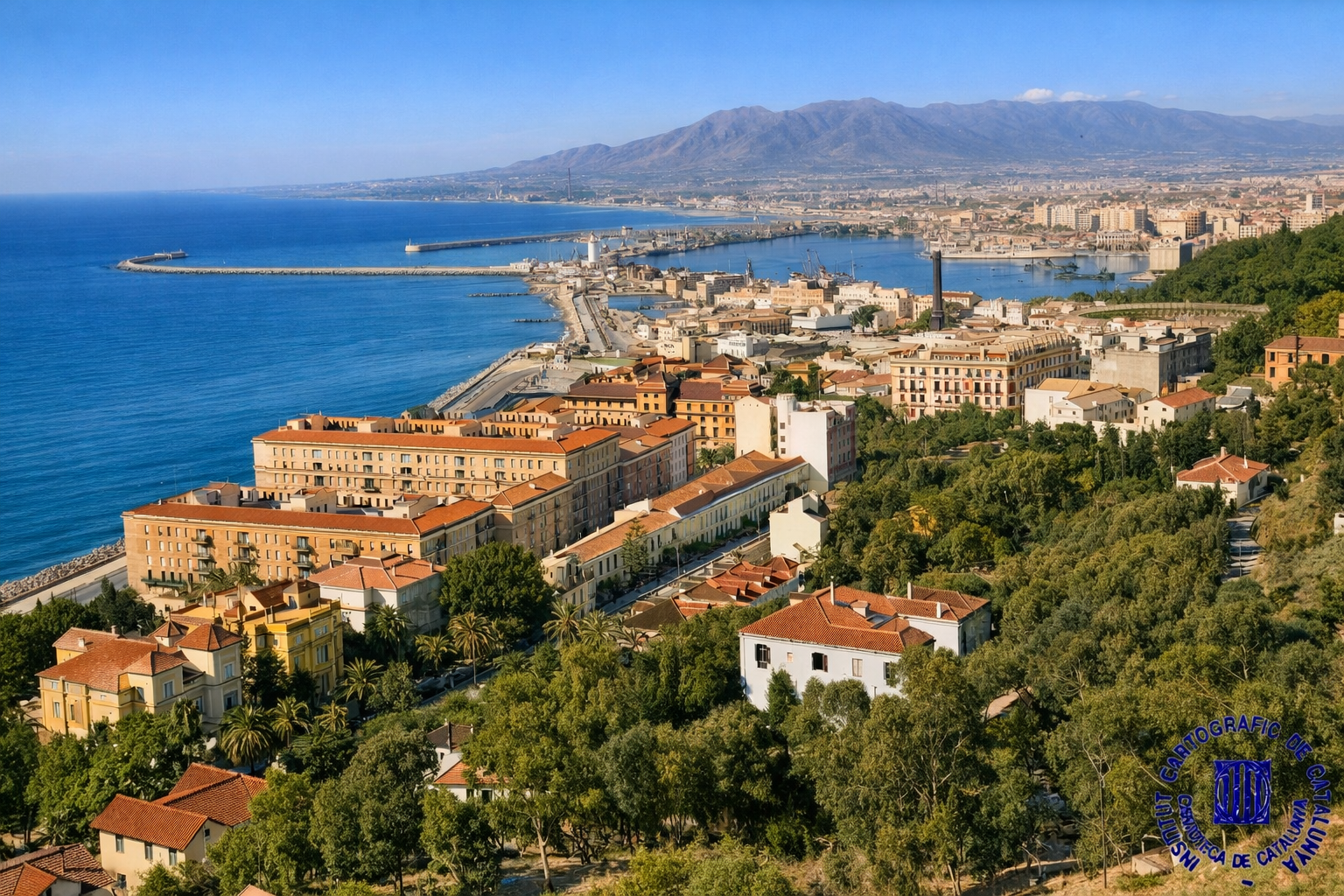 - Fotografía de A. Gaudi, 1857 de la zona de la Coracha, la Malagueta y el Paseo de Reding