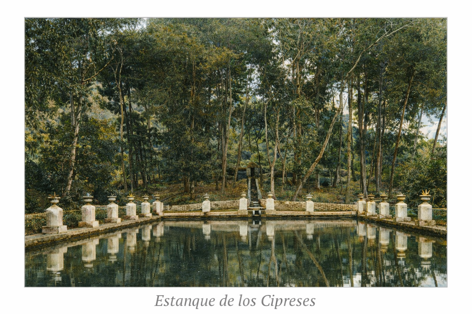 Los jardines de la Hacienda son notabilísimos, habiendo aprovechado D. Esteban Geodfre, a cuyo cuidado están, todos los accidentes del terreno, no sabiéndose qué admirar más, si las extensas praderas y los anchurosos paseos, o la infinidad de grutas, cascadas, saltadores y lagos para plantas acuáticas que a cada paso se encuentran. También hay preciosos bosquecillos donde jamás penetra el sol, y donde la soledad y lo agradable de la temperatura convidan al descanso o la meditación.