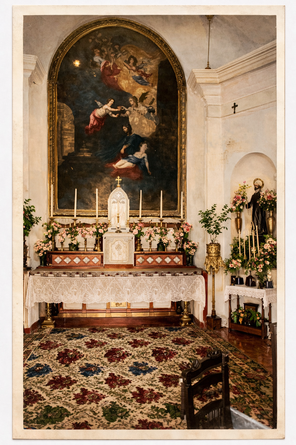 - Fotografía de la Capilla de San José cuando el cuadro de San José con el Niño estaba en el presbiterio