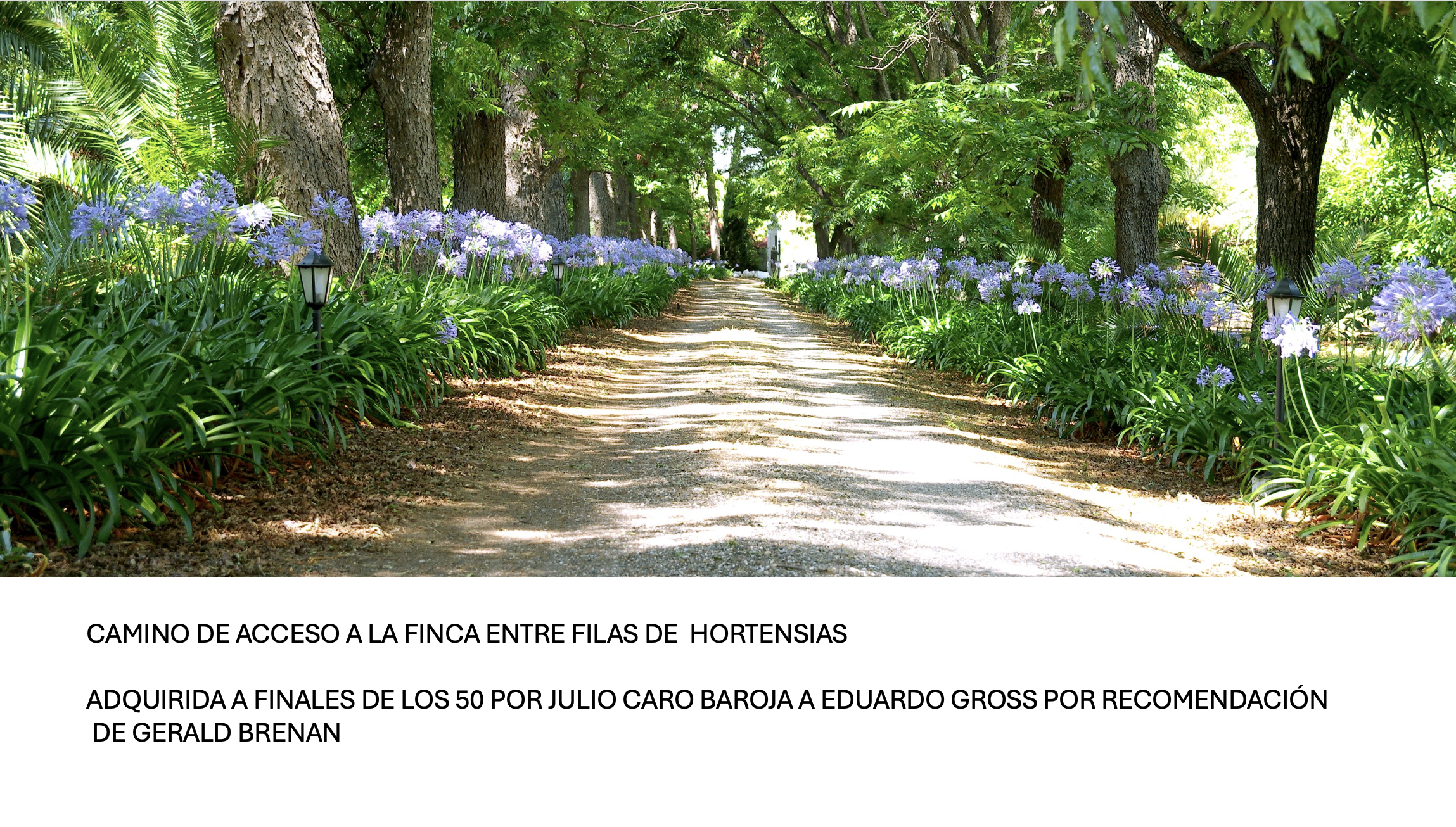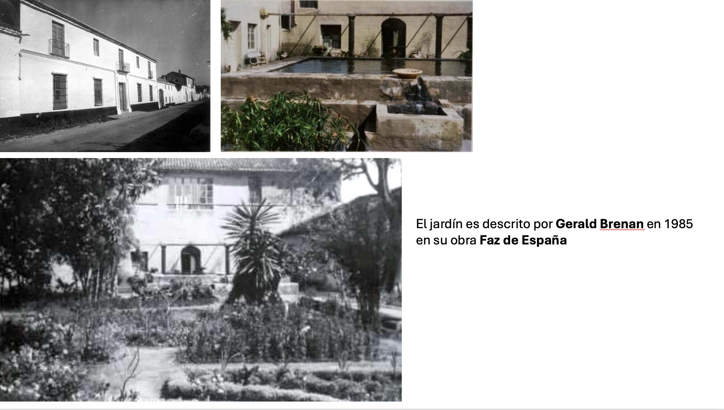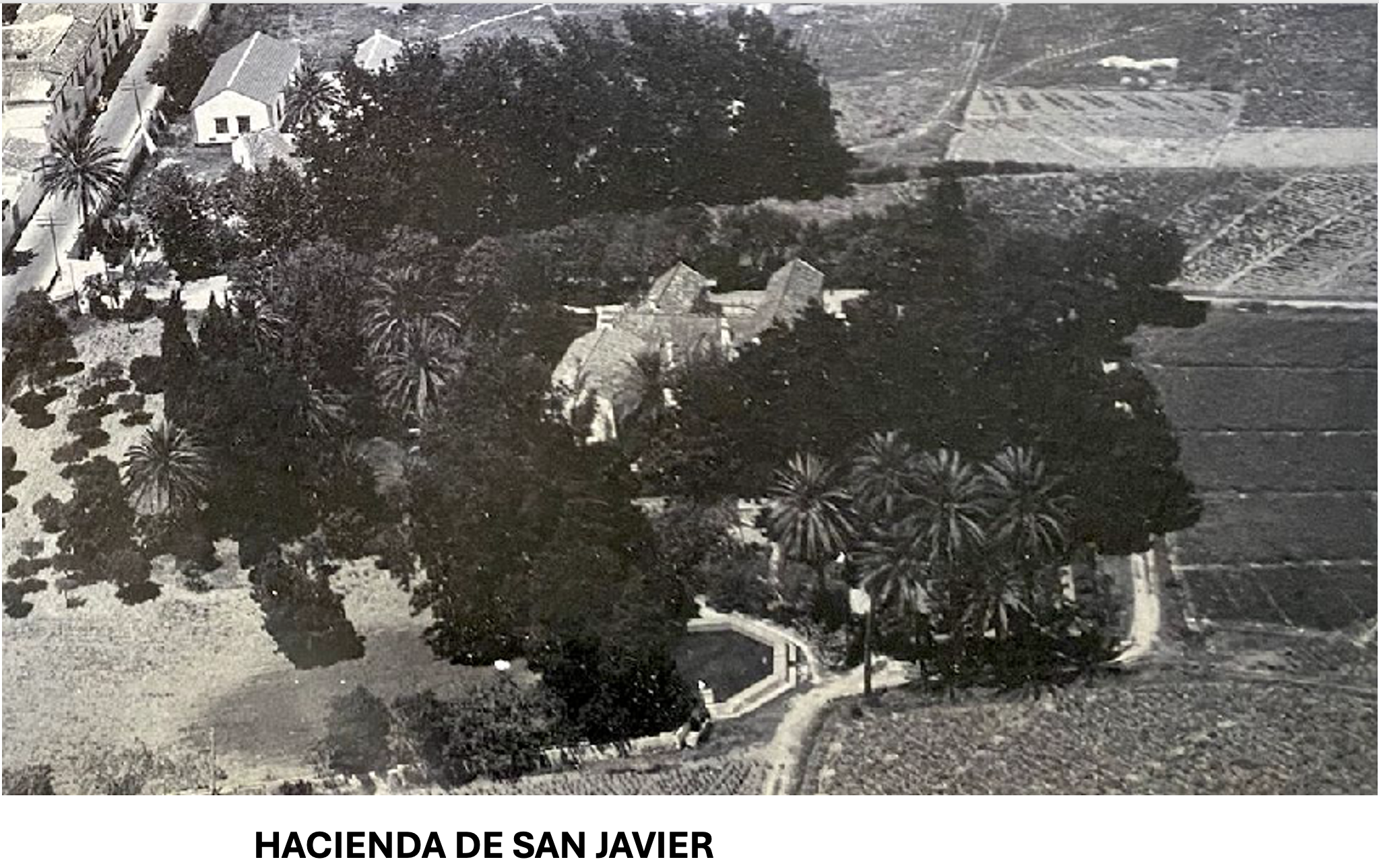 5. 1960. Es el año de inicio del boom inmobiliario de la Costa del Sol y de la destrucción de la mayoría de las haciendas y cortijos, en lo que también influiría la construcción del aeropuerto. Por esos años Paisaje Españoles realizó una fotografía aérea del centro de la población de Churriana, donde se pueden ver en primer plano la Hacienda de San Javier y las villas de Gerald Brenan y de Moreno Villa con sus respectivos jardines.