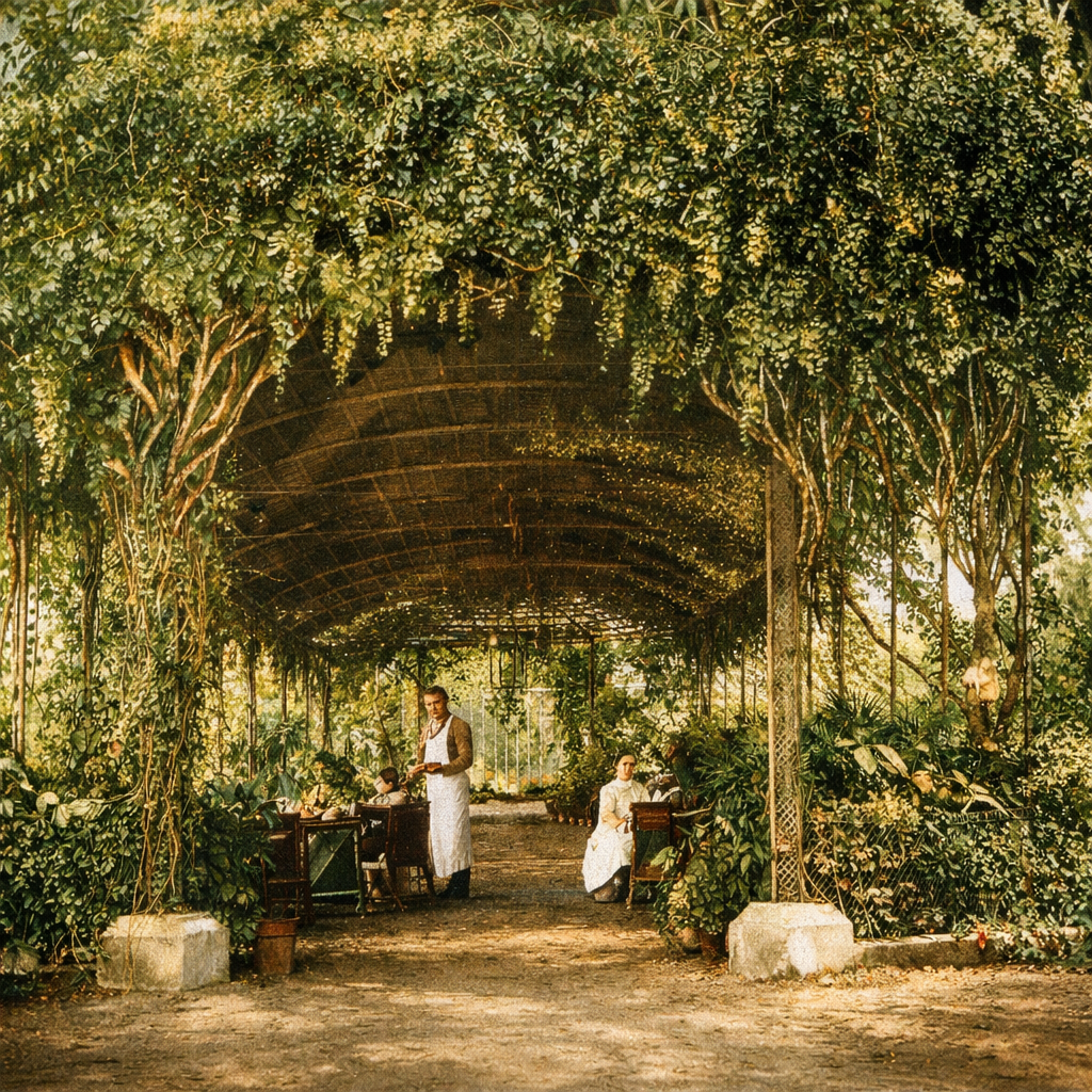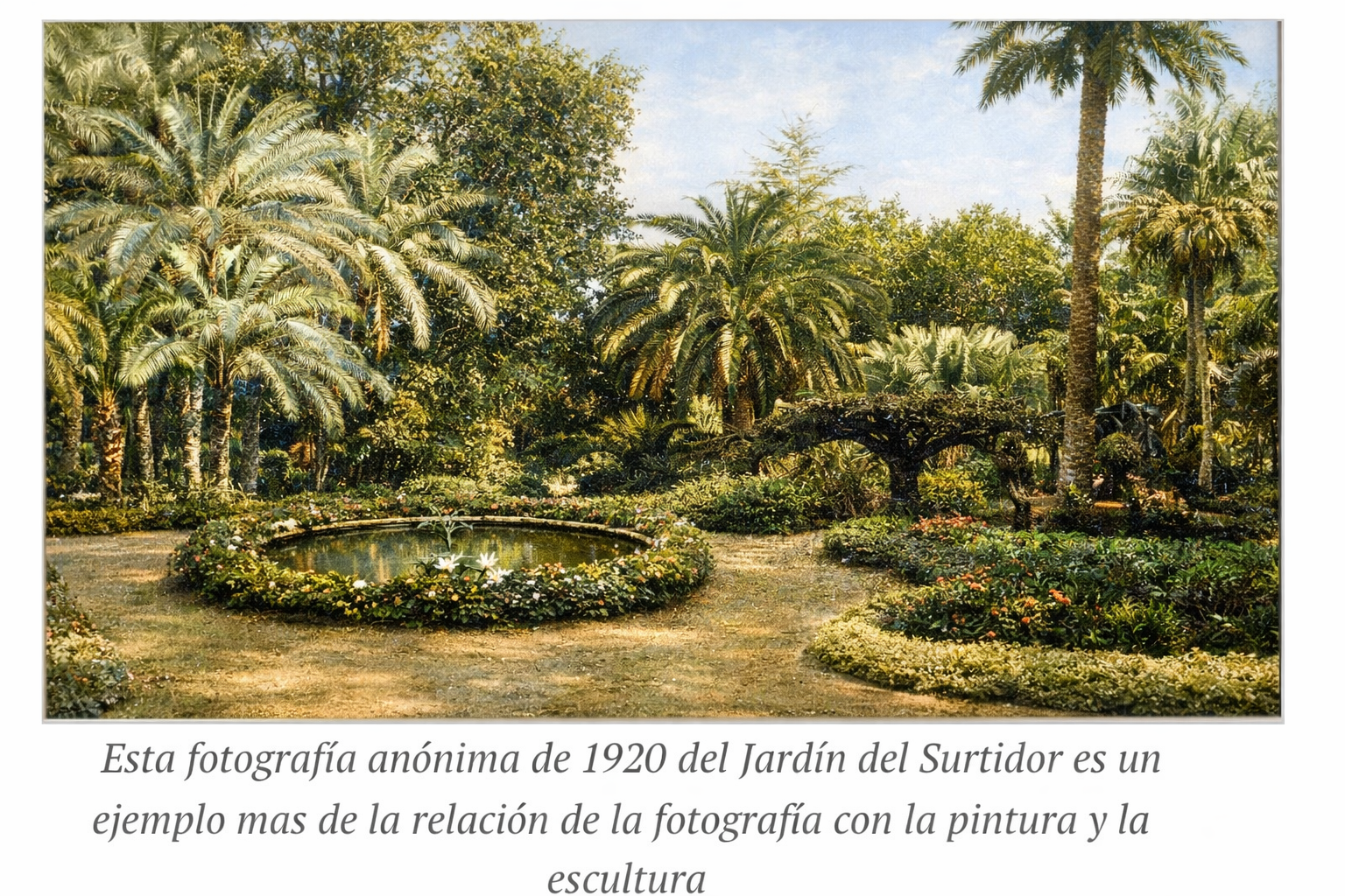 - Esta fotografía anónima de 1920 del Jardín del Surtidor es un ejemplo mas de la relación de la fotografía con la pintura y la escultura