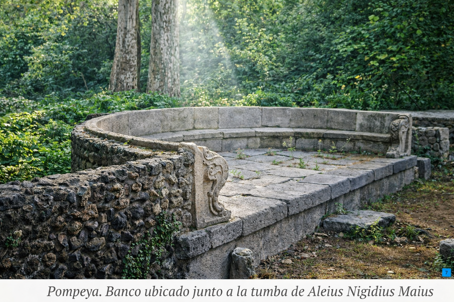 - Pompeya. Banco ubicado junto a la tumba de Aleius Nigidius Maius