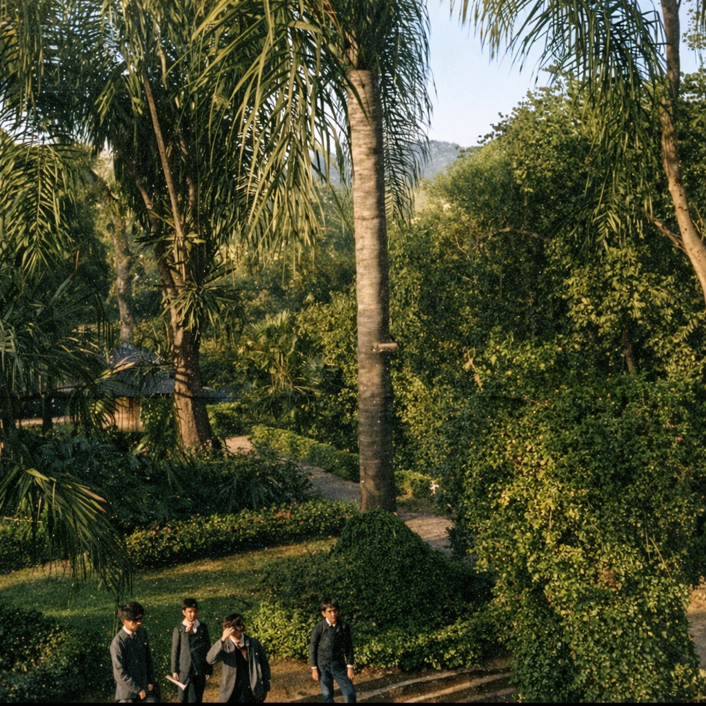 El vestíbulo, pues, tiene un anchuroso jardín, una fuente de mármol de carrara, cercada por una verja de hierro; una extensa galería cubierta de verdura y en fin, lo higiénico y lo risueño, cual vanguardia de la vida laboriosa y honrada que allí impera…