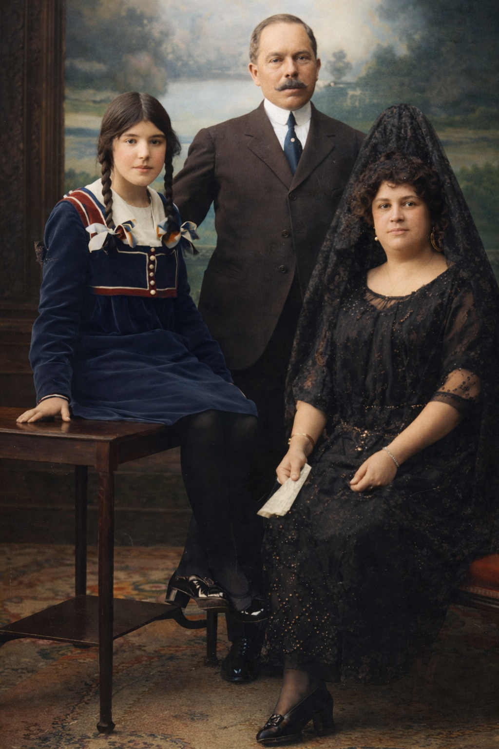 - El matrimonio Baena con su ahijada Manolita en 1918