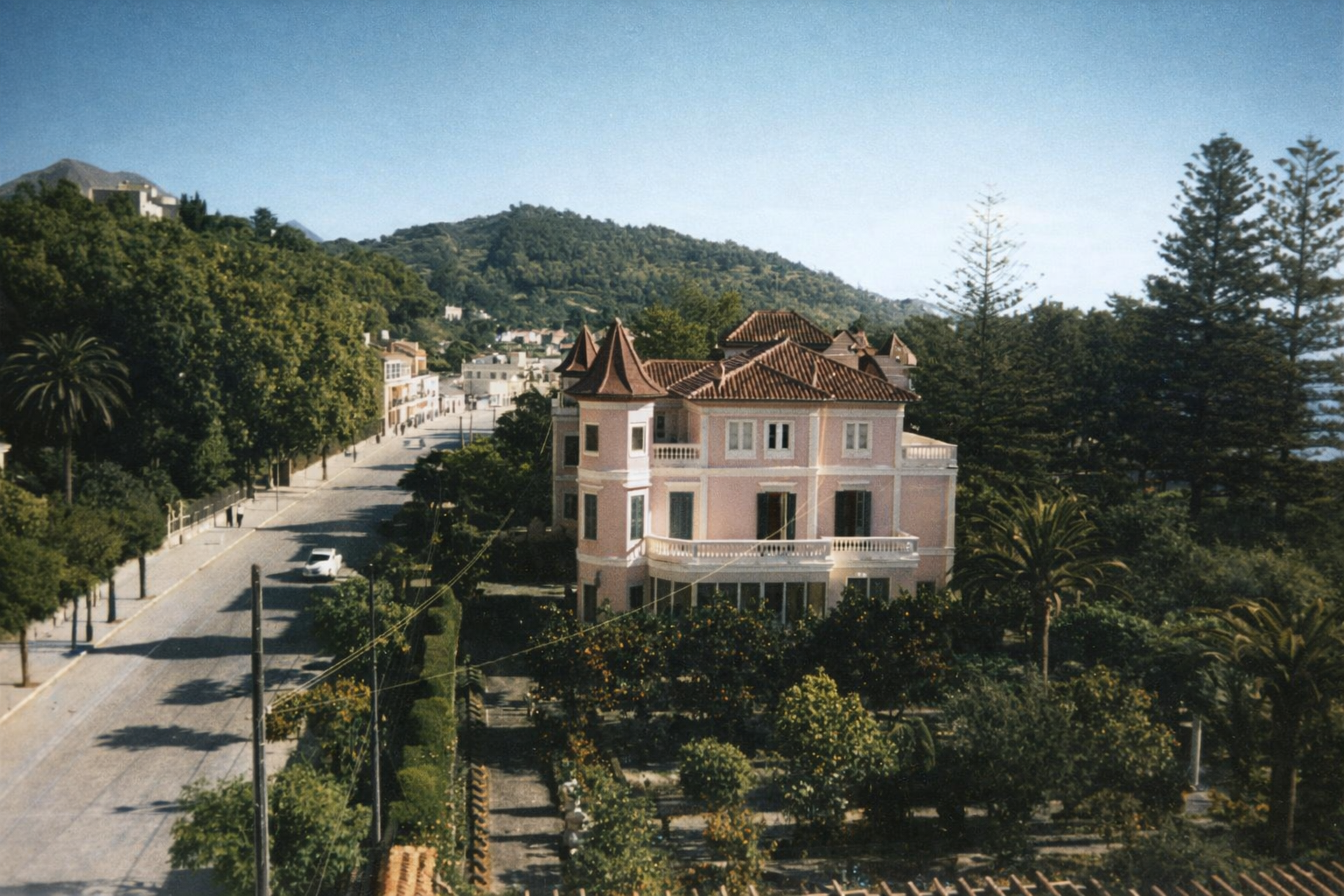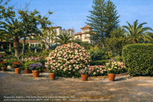 - Tarjeta postal de los años 40 o 50, en la que se ve la casa de Antonio Baenay los jardines abandonados