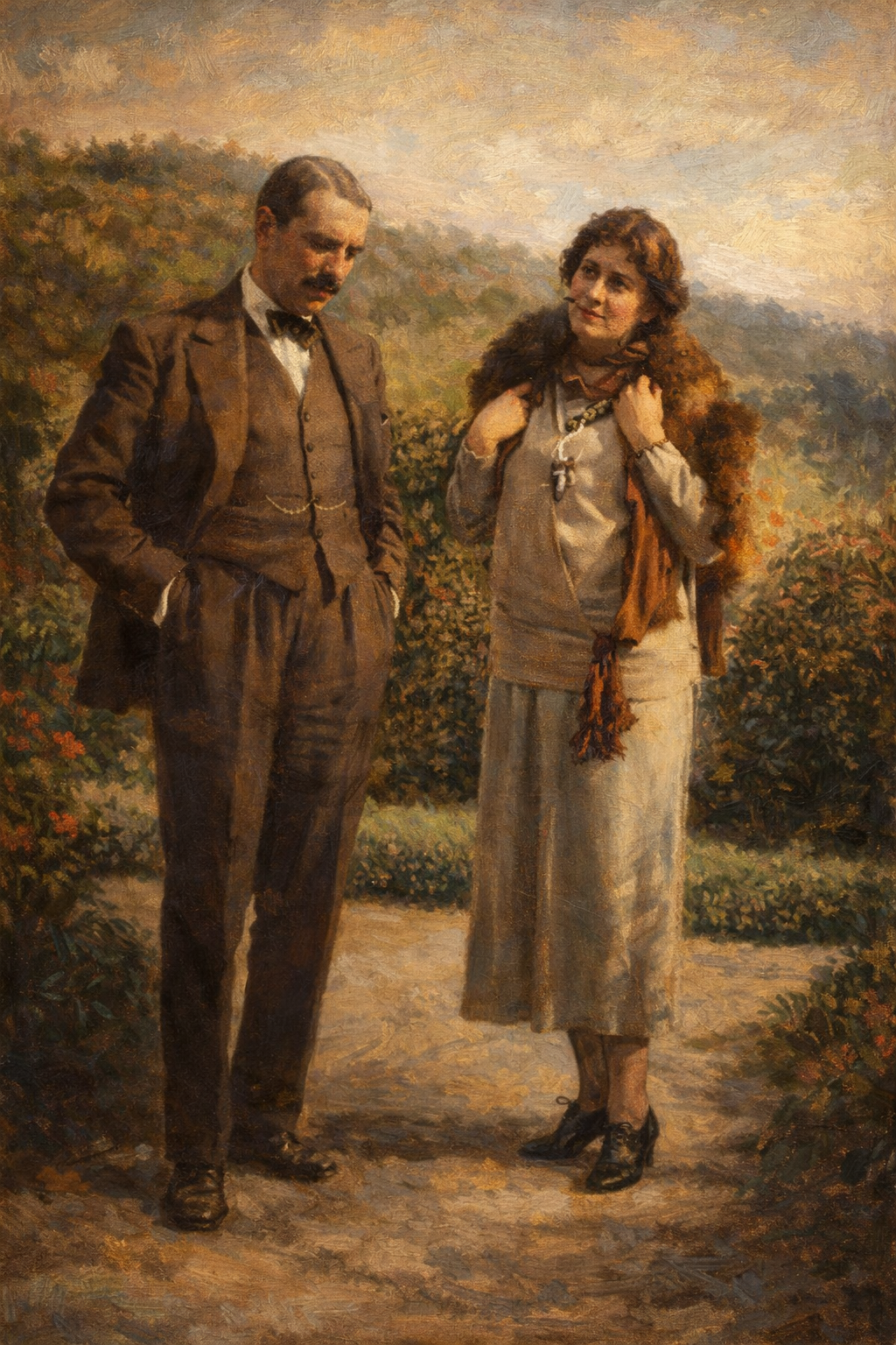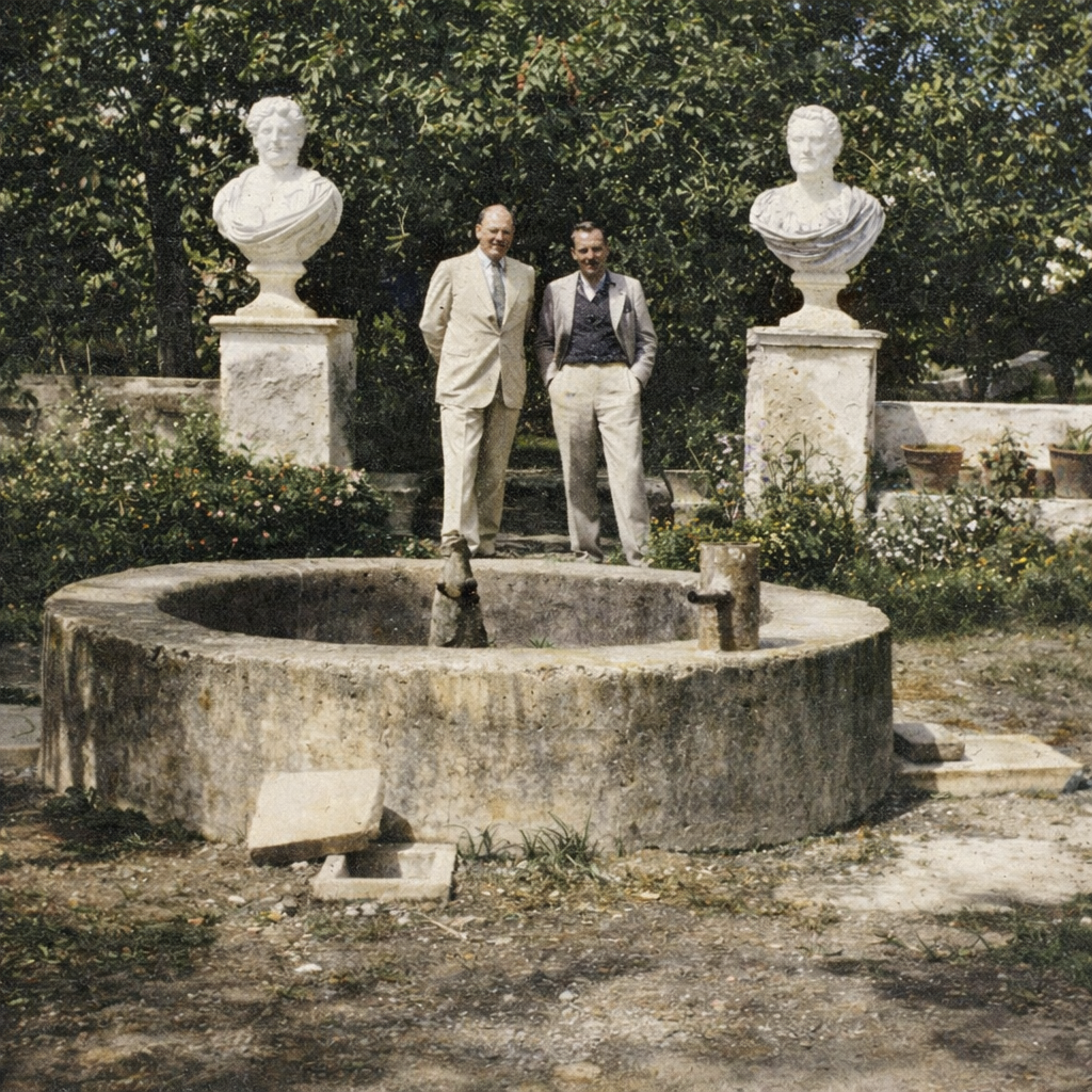 - Gerald Brenan (1894-1987), escritor, novelista, hispanista, y Ralph Partridge en el jardín de la familia de Moreno Villa de Churriana, fotografía de la Casa Gerald Brenan de Churriana