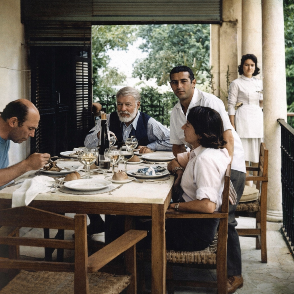 - Bill y Anne Davis, Ernest Heminway, Antonio Ordóñez y Carmen Dominguín en la Hacienda La Cónsula, anteriormente conocida como Hacienda de San Rafael, fotografía enmarcada de la Cónsula, 1959. En 1973 Anne Davis vendió la hacienda al Ayuntamiento de Málaga, su actual propietario